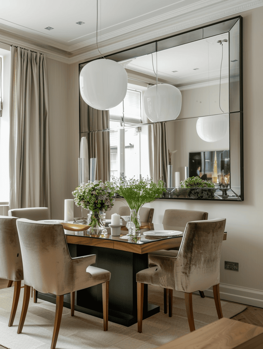 In the dining room, a full-length mirror can add elegance and sophistication. Hang it above your dining table to create depth and make the room feel more spacious. A mirror with a decorative frame can complement your dining table and other furnishings, enhancing the overall aesthetic.