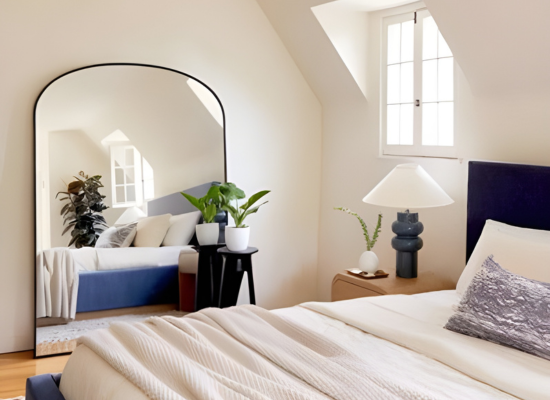 In the bedroom, a full-length mirror is both practical and decorative. Place it near your wardrobe or dressing area for easy outfit checks. Lean it against the wall for a relaxed, casual look, or hang it for a more polished appearance. A large floor mirror can also be positioned to reflect natural light, making the room feel brighter and more spacious.